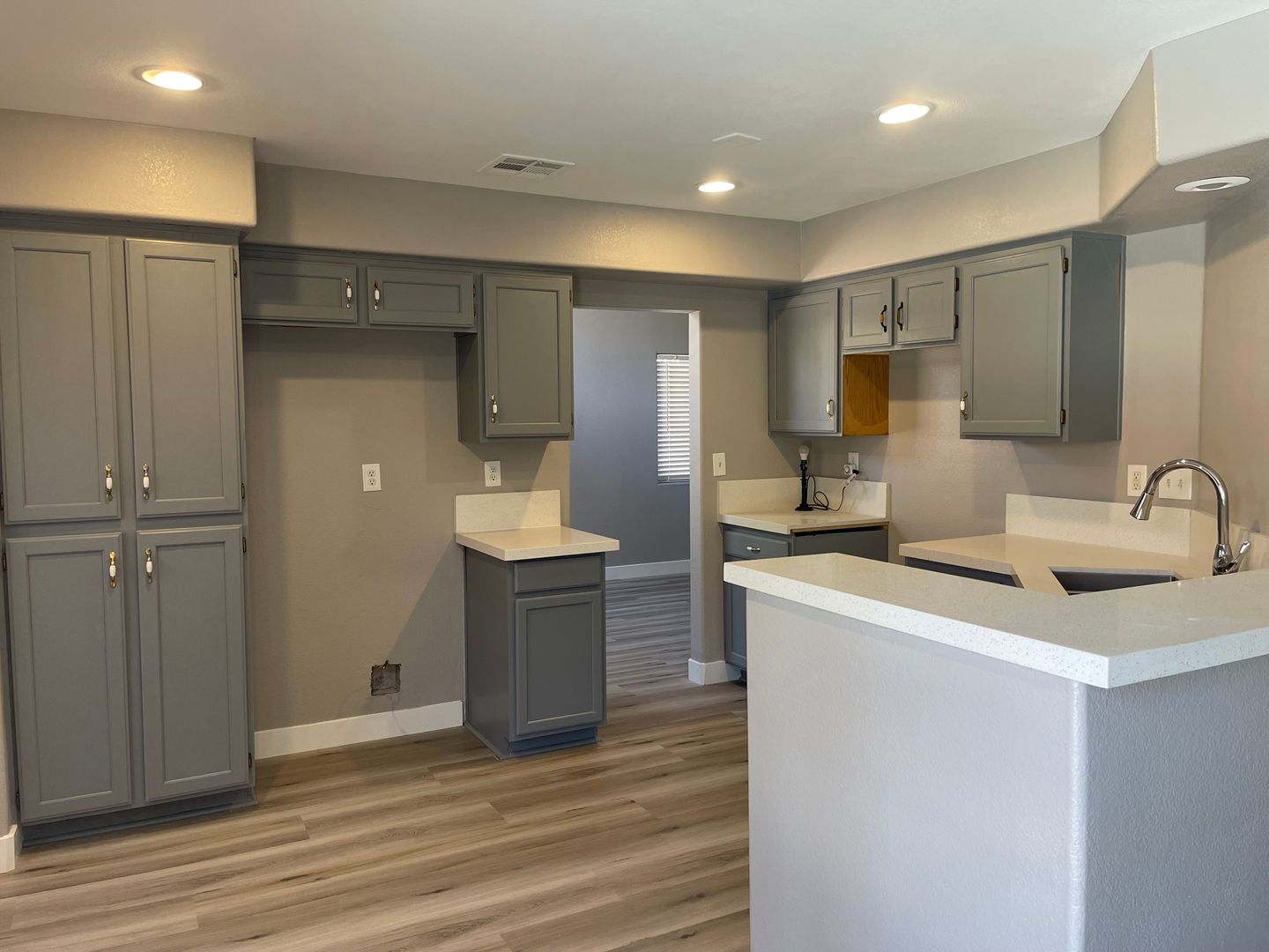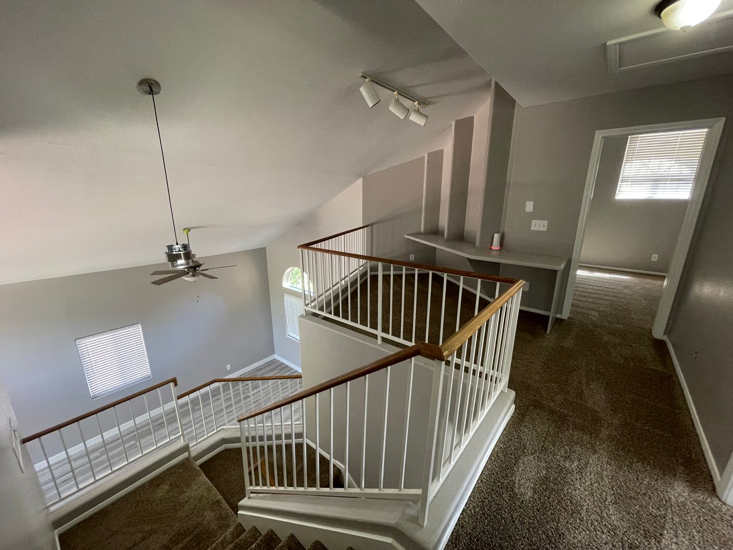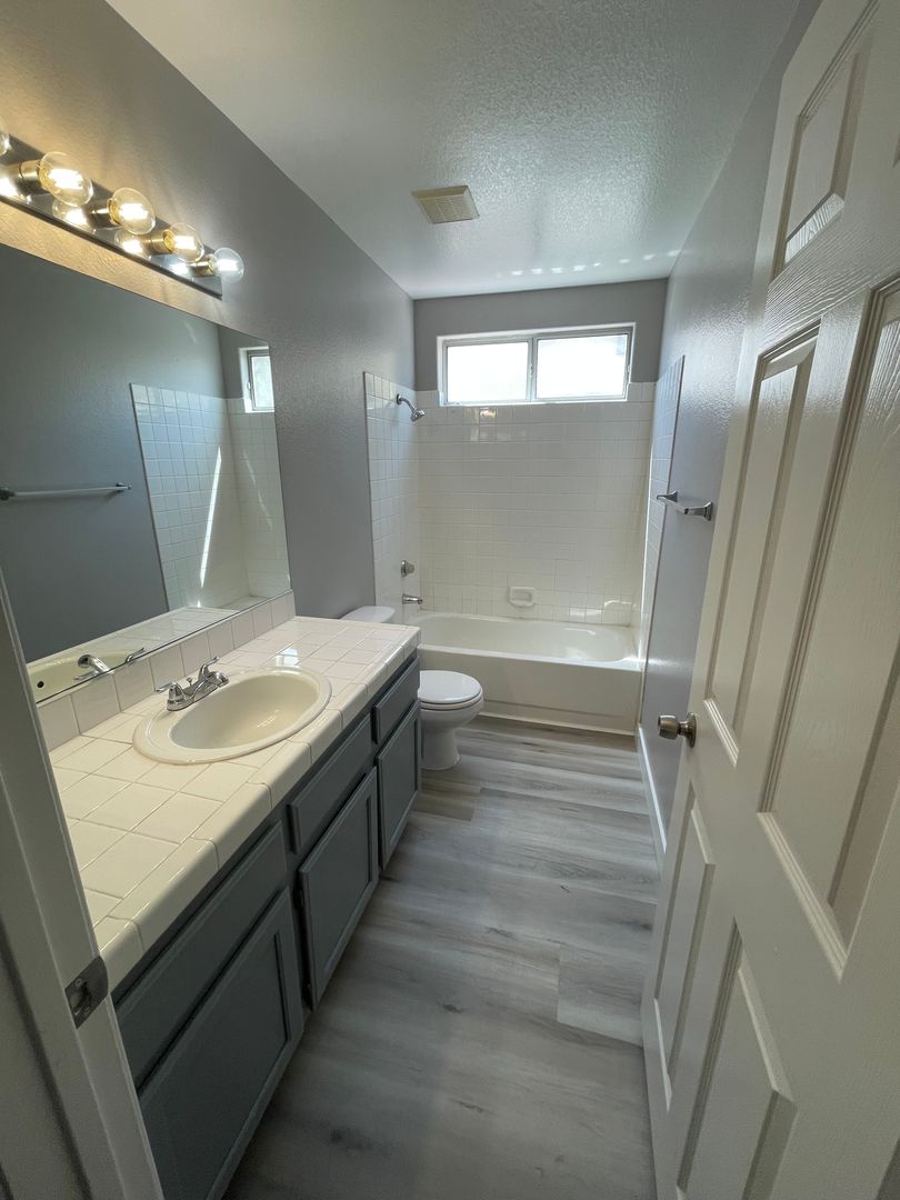Beautiful 4 Bedroom Pool Home! Two Tone Paint, luxury vinyl plank downstairs & carpet upstairs. Rehabbed kitchen w/new cabinet paint, quartz counters & stainless steel appliances. One Bedroom & Full Bath Downstairs. Open Kitchen with breakfast bar and eat in nook. Family room, Formal living & dining. Loft upstairs with built in desk and 3 bedrooms! Gorgeous yard with replastered sparkling pool just in time for summer. Tenant pays pool service of $130/month & landscape $150/month.